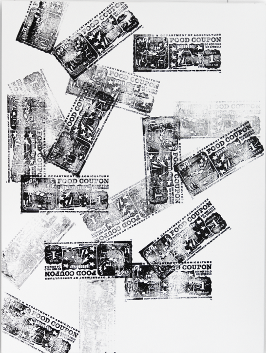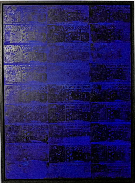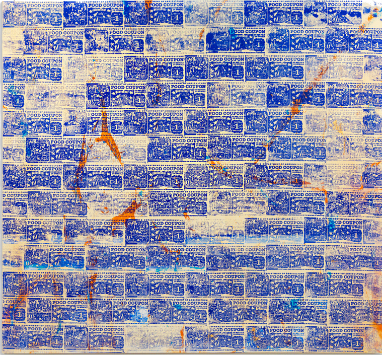 In this first collection, I share a memory. Some of the happiest times around the house were the first of the month, a time when it felt as if anything was possible. Food stamps were a symbol of happiness. Because as a young kid, I did not understand the ways of the world outside of my own. Food stamps were an object that I could not capture on the street with my camera, so I found my way to painting. Through a vibrant palette of colors, I present my latest series titled "1992", inviting others to experience one of my own favorite memories with me.